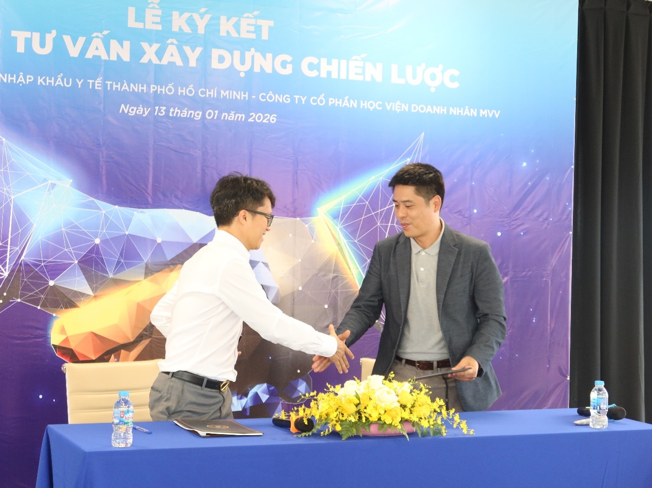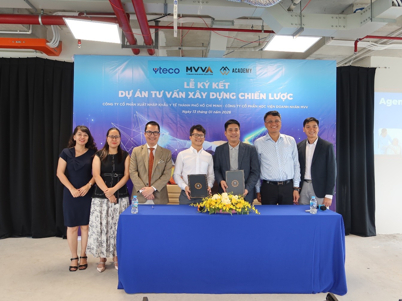 Vào Ngày 13/01/2026 vừa qua, tại Tòa nhà YTECO TOWER ,Công ty Cổ phần Xuất Nhập Khẩu Y tế Thành phố Hồ Chí Minh (“YTECO”) đã long trọng tổ chức Lễ ký kết Dự án tư vấn xây dựng chiến lược cùng Công ty Cổ phần Học viện Doanh nhân MVV (MVV Academy) thuộc MVV Group.
