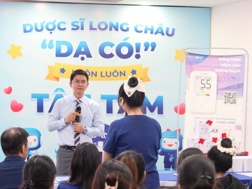 Tiếp nối chương trình, ThS. Nguyễn Thị Bích Chi – Quản lý Nhãn hàng Yteco – đã có phần đào tạo chuyên sâu về sản phẩm máy đo đường huyết EasyMax. Những ưu điểm vượt trội về độ chính xác, tính tiện dụng và công nghệ hiện đại của EasyMax đã được truyền tải một cách sinh động, giúp các dược sĩ dễ dàng nắm bắt và ứng dụng vào thực tế bán hàng.
