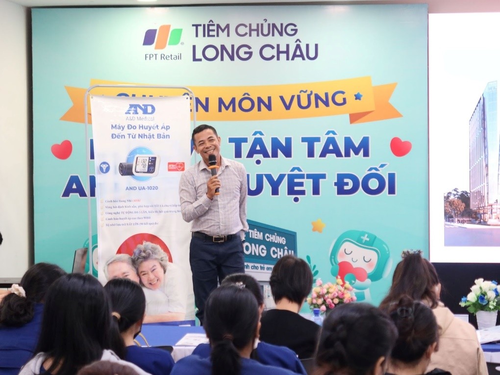 Bên cạnh kiến thức bệnh học, buổi training còn trang bị cho đội ngũ Long Châu những thông tin chi tiết về các giải pháp thiết bị y tế chất lượng cao, cụ thể là Máy đo huyết áp AND và máy đo đường huyết EasyMax do YTECO phân phối độc quyền.