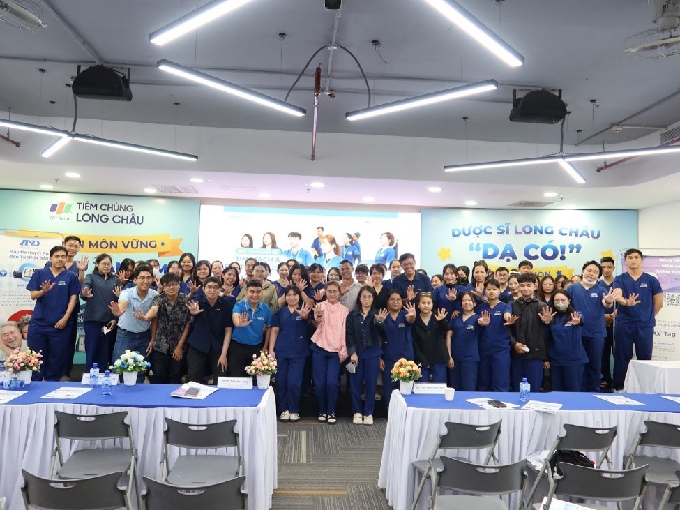 Nhằm nâng cao chất lượng dịch vụ và năng lực tư vấn cho đội ngũ dược sĩ nhà thuốc, ngày 16/03/2026, Công ty CP XNK Y tế TP.HCM (YTECO) đã phối hợp cùng chuỗi nhà thuốc FPT Long Châu tổ chức thành công chương trình "Training Đội Ngũ Bán Hàng Long Châu". Sự kiện được diễn ra tại TTTTN miền Nam Golden King (Quận 7, TP.HCM) với sự tham dự của hơn 100 nhân viên bán hàng xuất sắc đến từ hệ thống Long Châu. Mục tiêu trọng tâm của chương trình là đào tạo chuyên sâu về lợi ích của việc tự theo dõi các chỉ số sức khỏe quan trọng như huyết áp và đường huyết ngay tại nhà.